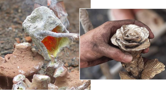 Technique de la cire perdue : modelage de la cire, moulage, récupération de la cire, coulage du bronze, limage de la pièce. Chaque participant partira avec sa propre création.